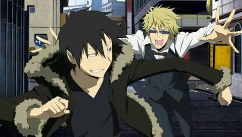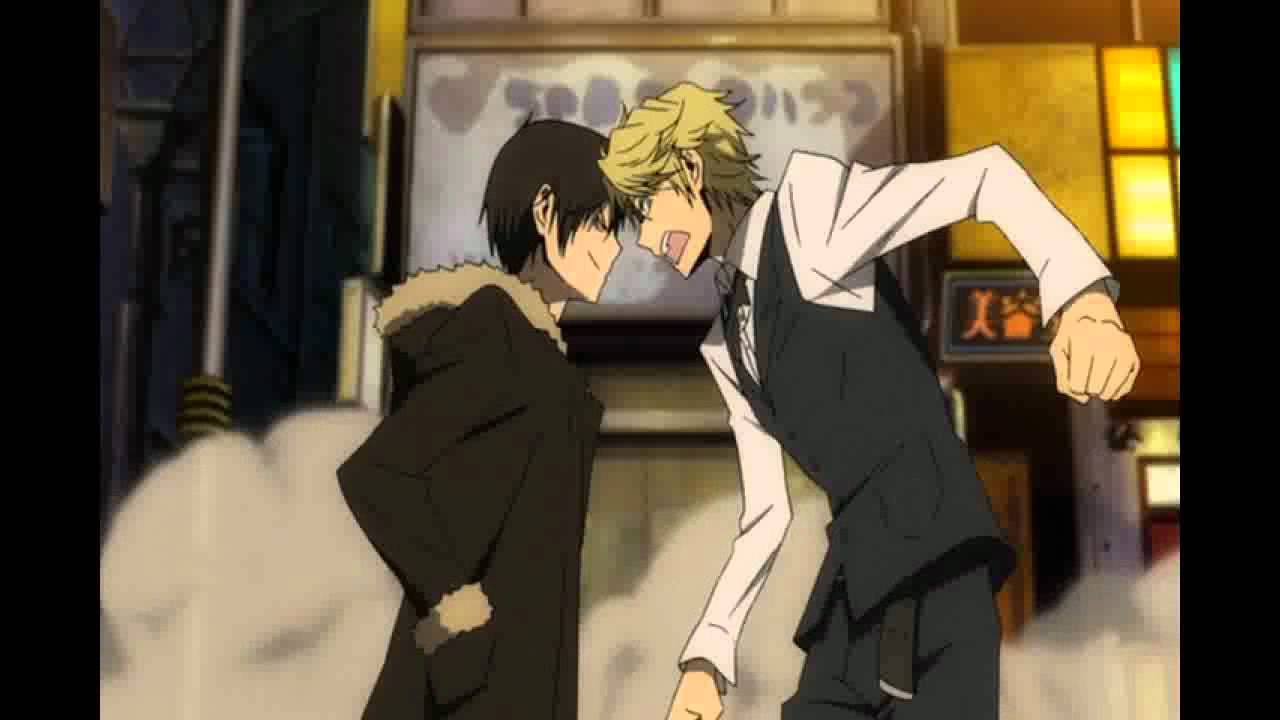 Ahaha, the fascinating Shizuo Heiwajima, the second most bizarre character in this series. His dynamic is quite remarkable among the characters. The dynamic is this: he’s so strong he can handle any object that exists on the planet like it was a featherweight. It would cause a great deal of confusion and disturbance, but the author handles it in a masterful way: Shizuo is almost completely apathetic about the world around him. But his apathy ends where his presence begins. If something bad is happening and he’s nearby, he’s getting involved, and in a big way. This usually takes the form of a flying car, or a street sign wielded with deadly force, or some half-finished construction project being torn to pieces. The only thing he gets really frustrated about beyond his immediate area is Izaya, who he lives to hunt and battle. Their occasional battles occur almost always after Izaya’s plans begin to fall apart. This is most likely because it’s never a part of Izaya’s plan to encounter Shizuo. If anything disturbes Izaya’s life plans, it’s Shizuo’s existence. If there’s every any measure of Izaya’s plans, it’s his goal, and ultimate failure, to kill Shizuo. Yes, Shizuo thinks Izaya’s name is “bastard,” and Izaya mistakes Shizuo for a little girl.
