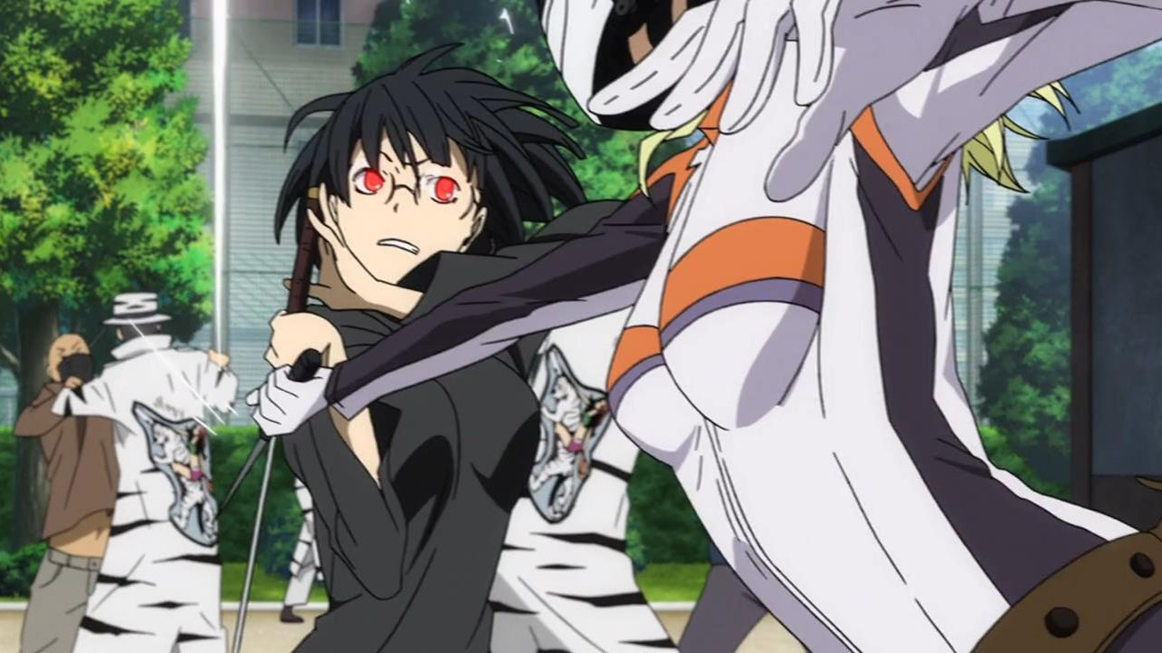 Anri Sonohara is a strange character. Is there a sadder face in anime? Yes, but the point remains. I would like to talk more about her, as I like her a lot in the series, but she is at times all too convenient to the circumstances surrounding her. Particularly, her Saika, the embodied katana she carries, creates a rather blah “am I a monster?” theme running through her character. Saika and her “love” for humans has potential, particularly in context of Izaya’s purported “love” for humans. But this ends up trailing around aimlessly through the series, really only serving to create the doubtful and cautious personality that we associate with Anri. And then by the time we reach the x2 arc, it seems like everybody’s got a Saika ability, and the dynamic it causes ceases to be unique, and just causes confusion. The writer could have done better with this.