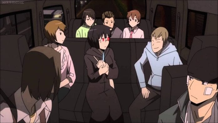 There are others I could go into. Masaomi is a tiresome character, but is the third part of the Mikado-Sonohara-Masaomi trio. The four otaku buddies in the VW van are fun, oddly reminiscent of Scooby Doo. They’re so goofy, but I particularly like how Walker Yumasaki can go from grinning otaku to grimly serious death machine. It happens very little, but it’s quite interesting when it happens. Kyohei is a strong character, and indeed, he is referred to as one of the main cogs of the Dollars, and the writer makes good use of this dynamic at least once. Erika I just like because she’s Erika! Hey, we all like our otaku girls. Interestingly, people kind of assign the “unicorn” status to female otakus, making her kind of interesting in this little world of humans and occasional supernatural beings. A subtle touch from this writer! And what’s up with that Russian sushi bar? They do a great job with these guys. Their stiff Japanese and interludes of Russian are funny. Varona gets thrown into the mix late, and adds a little humanness to Shizuo, which is interesting. Seiji and the women surrounding him are kind of funny. Haruna and her yandere eyes. The yakuza gangs that get involved add a lot of confusion in the characters and story, but Mizuki Akabayashi (I believe this does literally mean Red Demon, as he is occasionally referred to in the series) is a nice character.