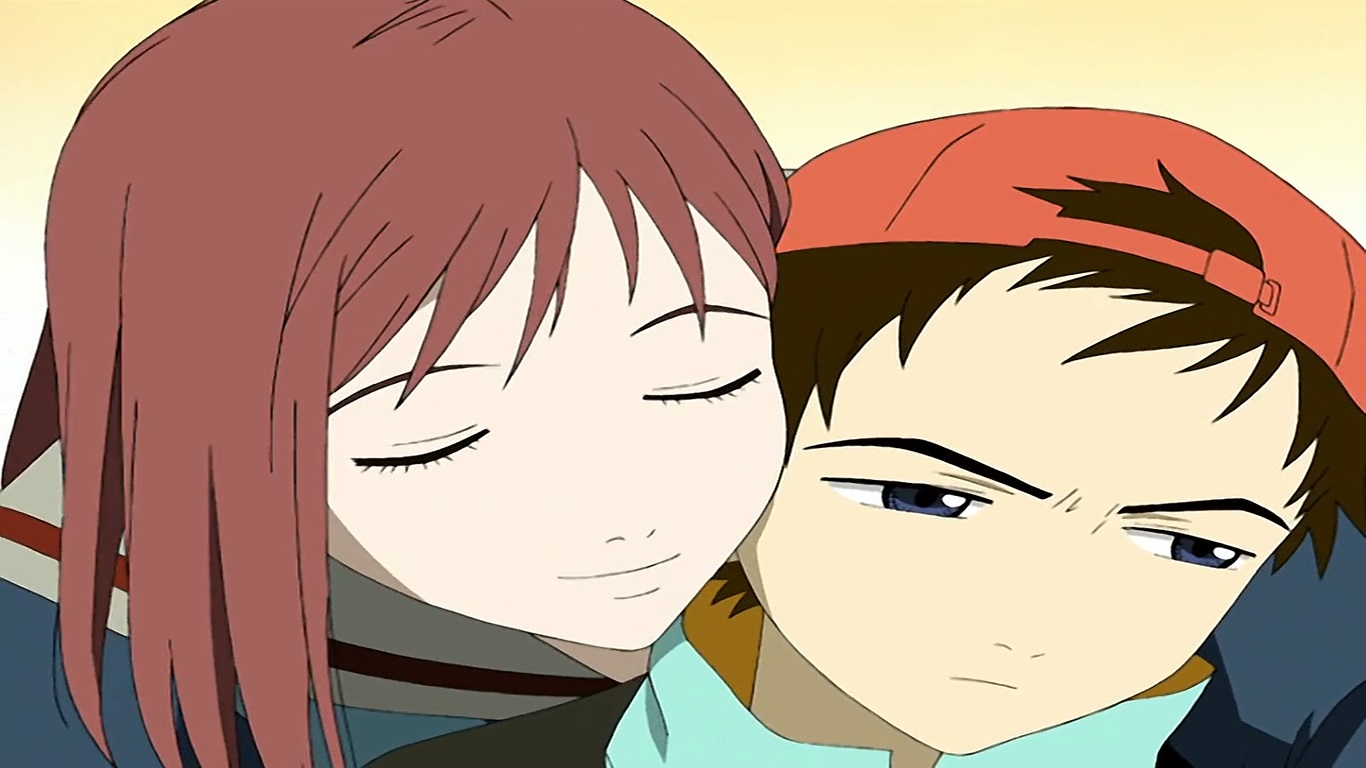It not even always clear if there are good or bad guys here. Yeah Medical Mechanica tries to destroy the Earth, but no one is actively trying to fight them. The mecha that spring from characters’ foreheads (oh yeah that’s another thing), while often enemies to our characters, are at times very helpful. Haruko seems to be working with the Interstellar Immigration Bureau (I don’t want to type that any more) at times. Even Haruko herself isn’t really a sympathetic character. She’s pretty uncaring in a lot of ways. Most of what she does is just to serve her personal motives. And if solving teenage problems helps her to achieve those goals, she’ll even show up as their homeroom teacher to do it. If it involves seducing their parents, or their love interests, she’ll do that too! But I don’t think we’re supposed to imagine she’s out to save the world. She’s just out doing whatever it is she wants, and to hell with the consequences!