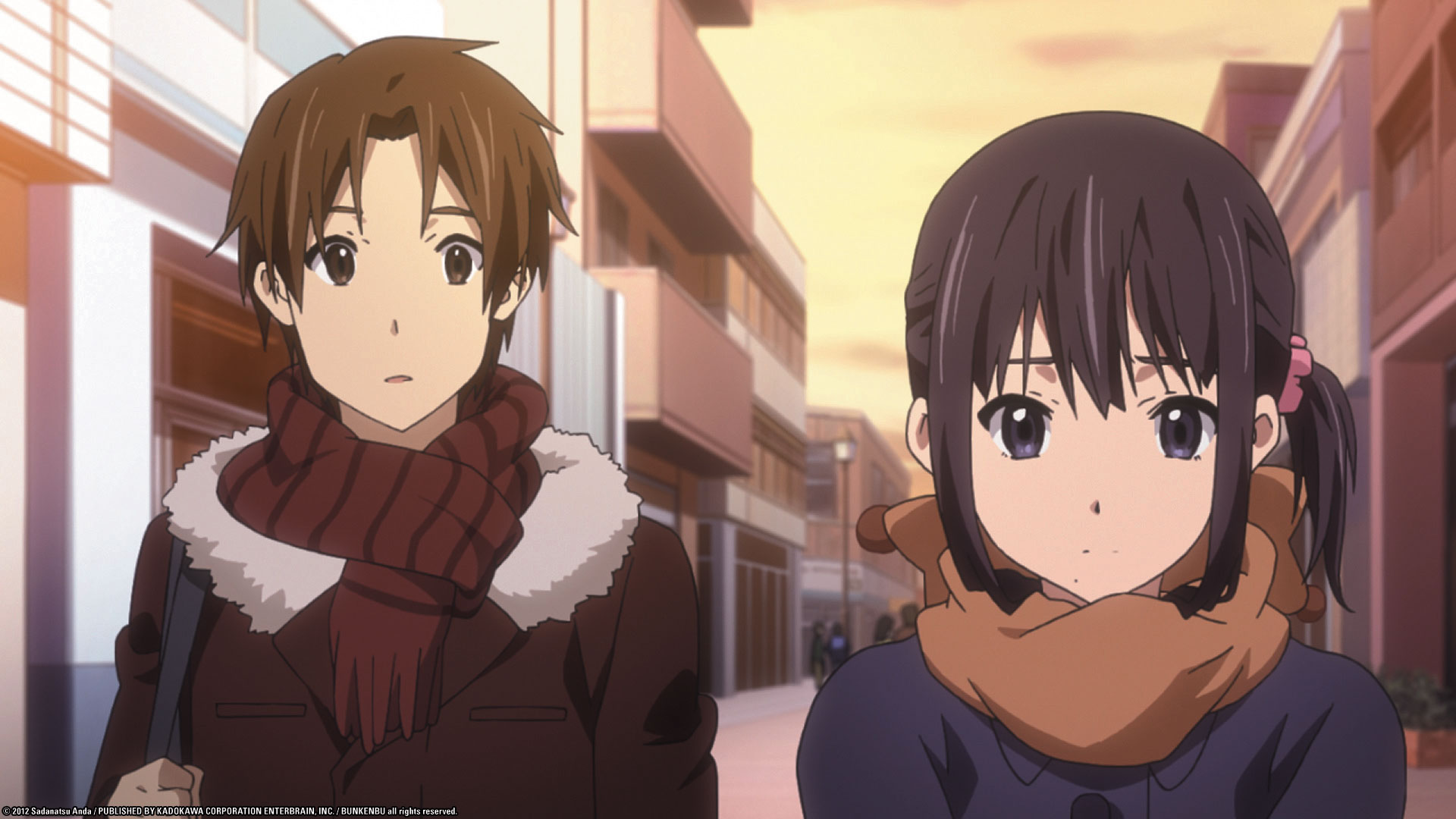 As you’d expect, there isn’t a great deal of motion in this show, so animation itself isn’t a big effort. I found it interesting that Sawashiro did the best job syncing her speech to Inaba’s lips, which is to be expected of someone as renowned as herself (everybody wanted her when this show was made back in 2012). The scenery is ordinary and does its job. I guess I could quibble that, to have a supernatural element, nothing in the artwork particularly shows this. This art could pass for any romance anime. That’s not a bad thing, I love this artwork for this genre. It’s just that if the artists wanted it to have any kind of supernatural feel, it isn’t obvious.