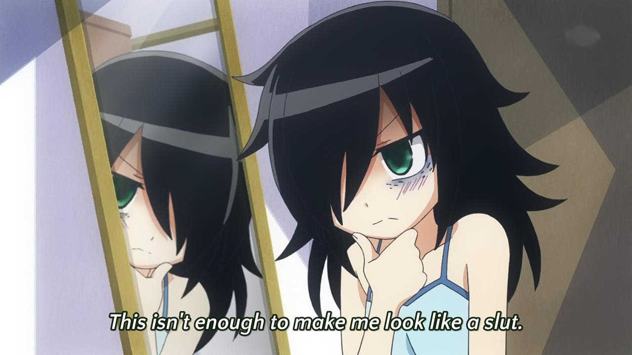 Great art should be evocative, to any level of degree. Sometimes that takes a very traditional path. We’re supposed to cry our brains out in Your Lie in April. We’re supposed to hold our sides as we roll on the floor in pain during Gintama. We’re supposed to feel warm and happy when Tsukasa and Nasa share cute moments during Tonikawa. We’re supposed to feel the burning in our heart as Eren Jaeger wreaks his revenge on Marley, and mad as hell when Sasha dies, in AoT. But rarely does an anime cause you to so distinctly feel such contrasting emotions as what I experienced with WataMote. That’s a high accomplishment.