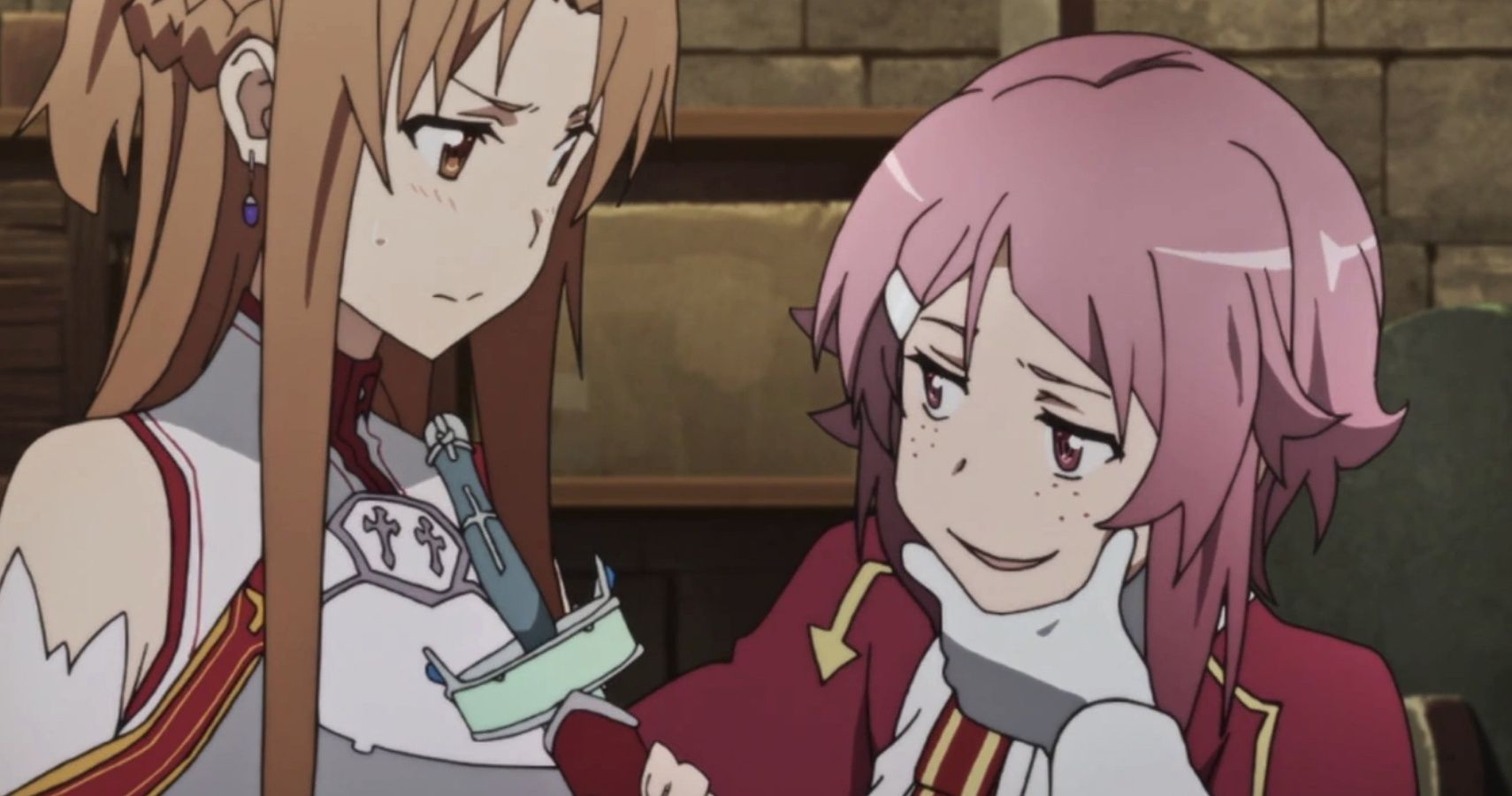 Yuuki has a handful of inexplicable things about her character. I get the role she serves, but I’m not really sure why we needed to go this route in the show. For one thing, she’s like a Sachi version 2.0. She appears, lots of heartfelt events pass, and then she dies and is gone. Her role is quite obviously to enable us to focus in on Asuna, both in-game and irl. I get that, but why make her so similar to Sachi and the events surrounding her? It’s a question that, with limited pondering, I cannot discover the answer to. Next, she’s obviously meant to be featured as another member of the MC group. How do I know this? Because you don’t hire Aoi Yuuki to be a character’s VA without the character having some major role. Aoi-san is one of the most prolific VAs out there, even back in 2014, almost always voicing characters that either are the MC or directly surround the MC. By then she had already had major roles such as Madoka in Puella Magi Madoka Magica and Diane in The Seven Deadly Sins, among others. Most notably since then she’s voiced such memorable characters as Tanya von Degurechaff in The Saga of Tanya the Evil, Tsuyu Asui in My Hero Academy, and Tamaki Kotatsu in Fire Force. If you associate anything with these characters, it’s that there’s not much similarity between any of their voices. Which brings me to my third point of confusion about Yuuki. She sounds like a young boy. If I’m not mistaken, she refers to herself with the pronoun “boku” as well, usually used by young males. But she’s quite clearly female by every account we have of her. I can only assume this slight masculinity was done intentionally by the author, evidenced further by the offer of marriage she makes (jokingly, I guess) to Asuna. Perhaps this was just meant as a character trait for Yuuki, and amounts to no more than that. But it’s noticeable enough in the show that you wonder if there’s more to it than that.