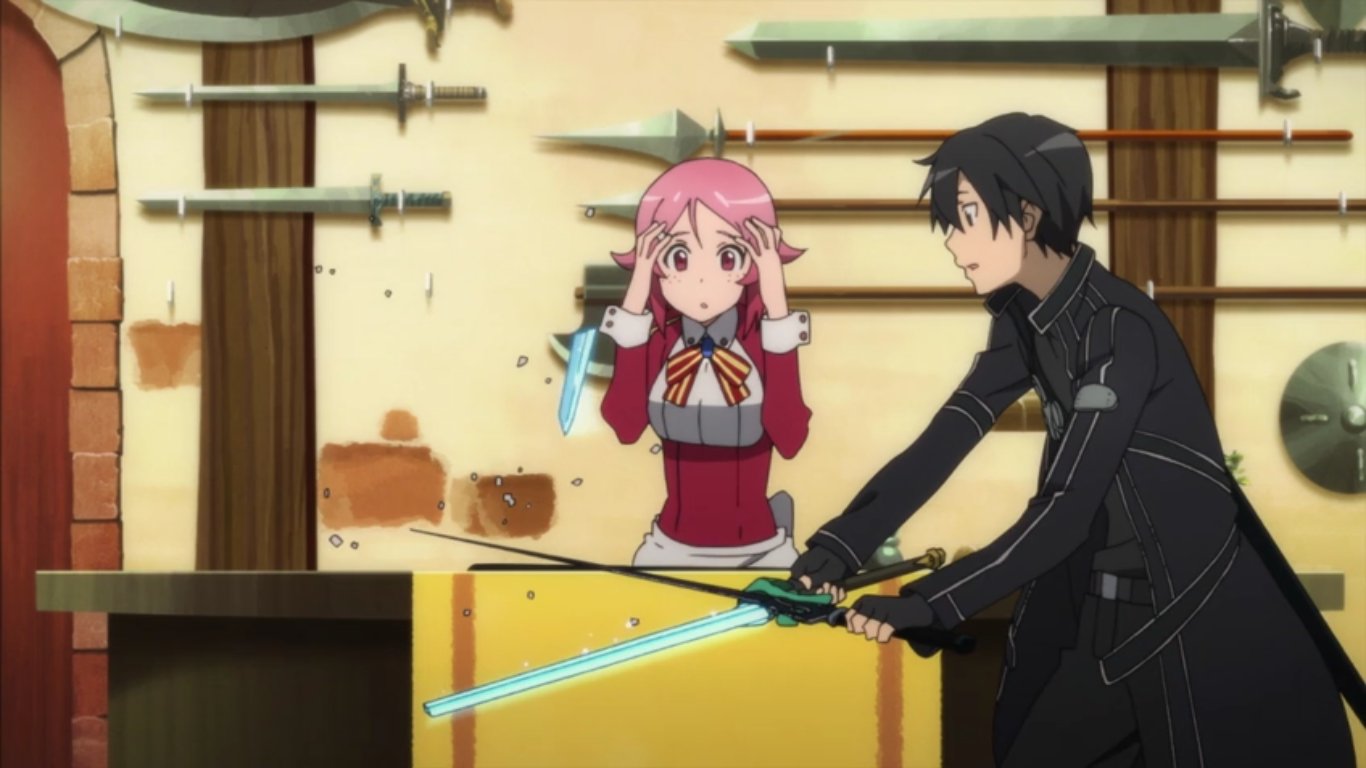 Yes he’s a screamer too. If you didn’t already know it, this is the same guy, Yoshitsugu Matsuoka, that plays Bell Cranel in Is It Wrong to Pick Up Girls in a Dungeon? (I’ve always hated that title). And he screams and hollers during his battles (in both these shows) more than the girls do. He’s a prolific VA. I think he won an award for his performance for Kirito in 2012 (don’t quote me on that). But I will always hold this screaming against him. I guess you could say it makes the character even more memorable. I find it frustrating that I can’t disassociate Kirito from Bell Cranel for this reason, but then again the association makes them both memorable in that sense too.