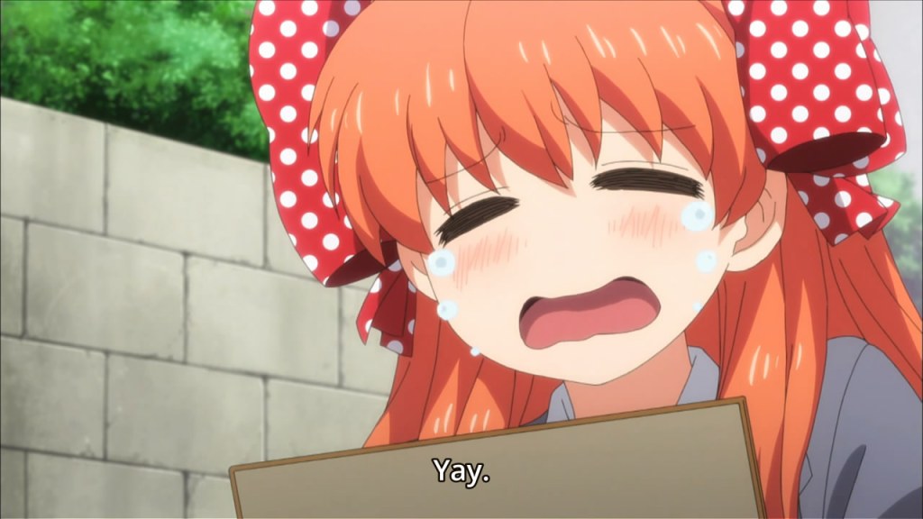 The music is very fitting in this series. It kind of reminded me of how the music really fits the scenes in Miss Kobayashi’s Dragon Maid, where the music is slightly mischievous. And I don’t know who decided to cut those snippets of a handful of famous classical pieces into a few scenes, but it’s extremely effective. I could name most of the pieces featured, and it was always hilarious how it juxtaposed with the craziness that was happening before our eyes! I don’t always notice music, and you wouldn’t think it’d be that big of a deal in a rom-com, but it was remarkable enough to notice and therefore to mention here.