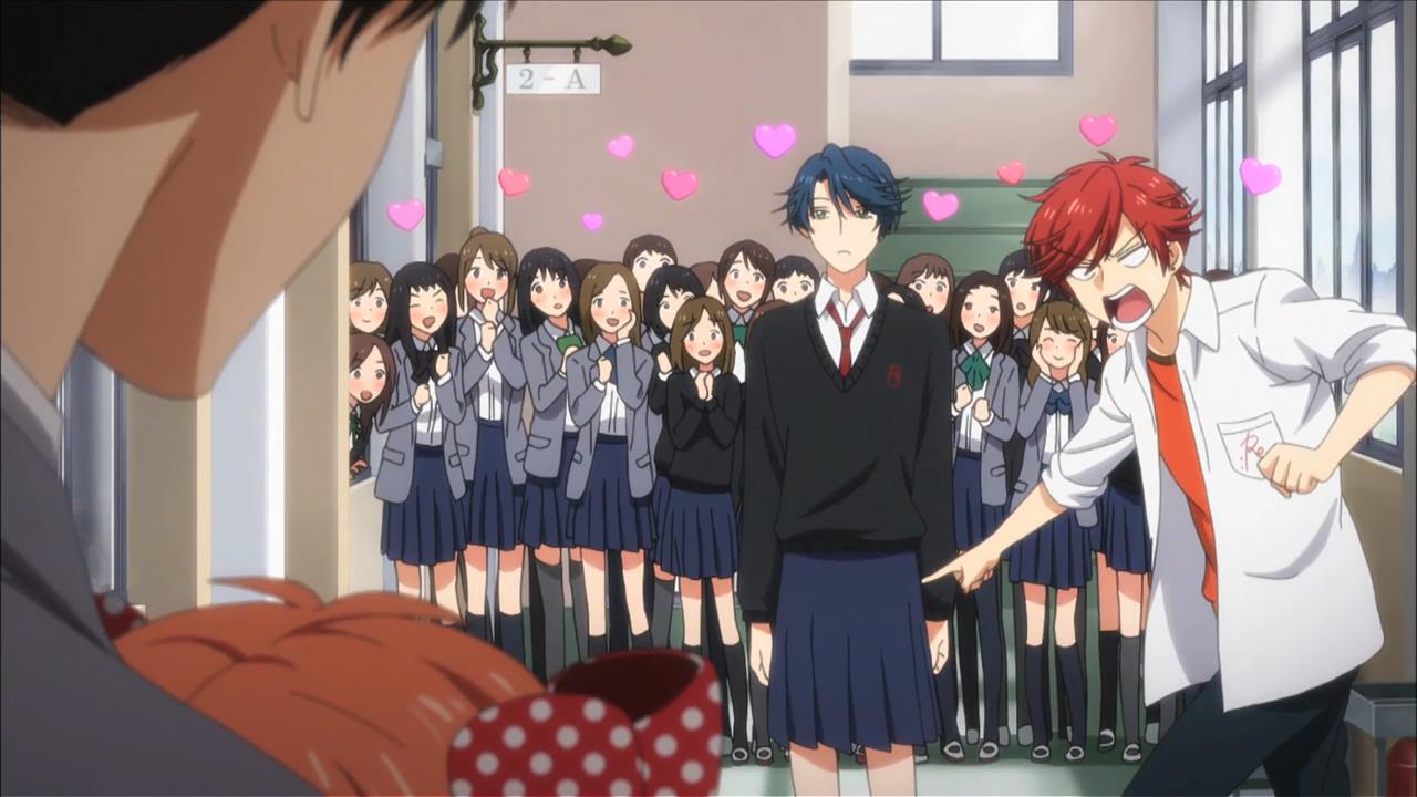 I could easily highlight the other characters individually, but most of the remaining characters give me an opportunity to instead highlight something uniquely quirky about this anime. While nobody’s gender is ever in question, the lines between the two genders are hilariously bent many times during this series! Kashima is the clearest example, always playing the prince in the drama club’s silly plays (who’s ridiculous storylines are of course provided by Nozaki) and attracting every female’s attention at the school. And of course that episode where Kashima, since she’s kind of in love with him, keeps noticing and misinterpreting Hori’s comments and behaviors into thinking he wants to be a girl, so she keeps sending him girls’ clothing items secretly, which of course Hori misinterprets as her trying to bully him. Then you have Mikoshiba. He’s obviously attracted to girls (as they are to him), but he himself has a lot of feminine attributes and tendencies. His nickname is even cutesy, “Mikorin.”