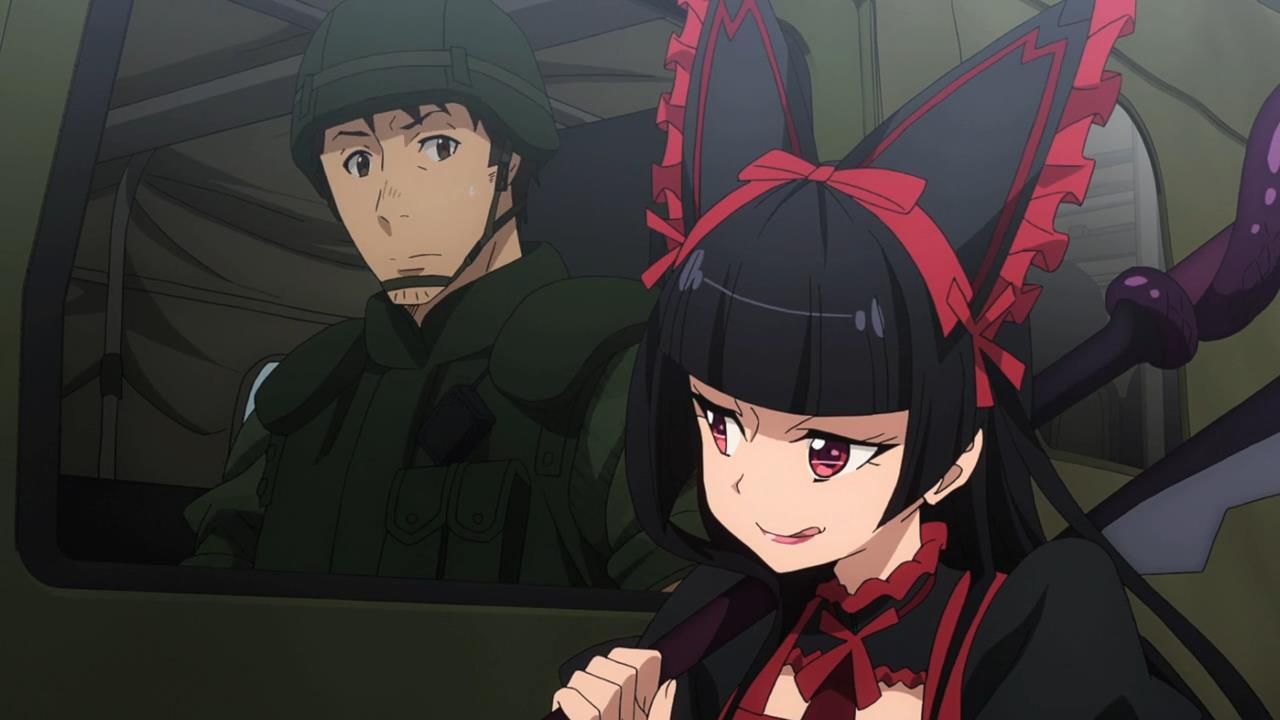 But to me, the most unusual part about her is that she isn’t an enemy. Imagine your stereotypical villainess in isekai anime. Now recall Risa Taneda’s (Kaori, Your Lie in April, Ai Mizuno, Zombie Land Saga) voice for Rory. Yeah, that smug, sultry voice belongs to a villainess. The crazed, girlish laughter gets a little annoying, but it’s part of what makes her character memorable. Add to that the red and black we almost always see on villains and the vicious fighting style, and you’ve got one hell of a villainess, even if she’s a little stereotypical. Even this stereotypical character design has a great effect. The first time watching this show, you’re waiting for her to turn on the JSDF, it’s that pronounced. Eventually you pretty much accept she’s on their side, but I remember watching and wondering what setback she might deal to the JSDF if she turned on them. But then she never does. And in hindsight and in subsequent rewatches, I find the fact that she’s a reliable ally extremely atypical. It has a great feeling about it.