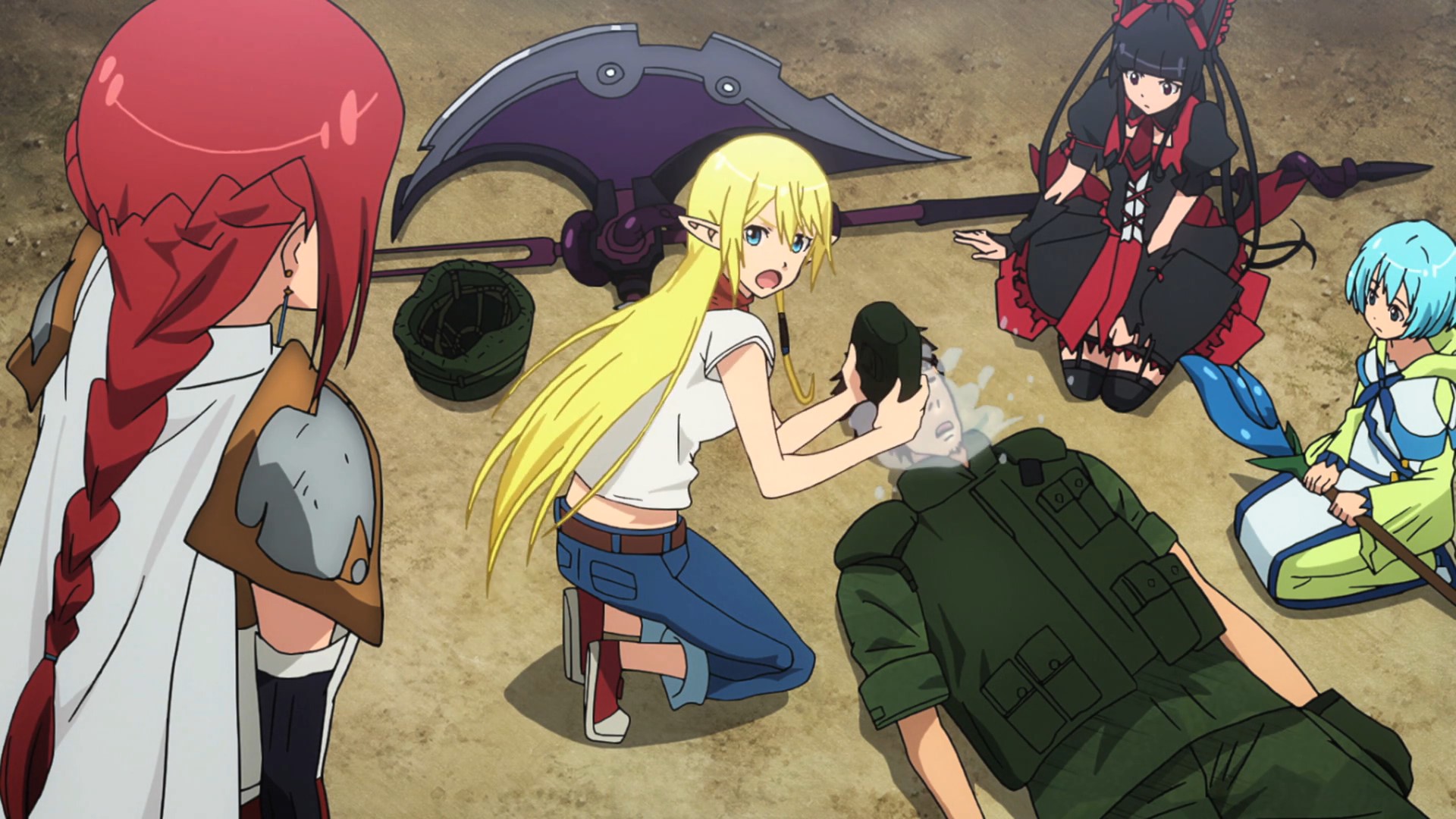 Before I even dive into characters, I must note that everything in this show is driven by the underlying premise of the show. A modern military encounters a medieval military, with inevitable results. All of the characters are affected by this. Not that it’s a bad thing either, but I think we could all imagine a pretty typical isekai story containing these characters. In such a show, we would get a fairly typical set of storylines for each character’s development. But all of that is cast into a different vein for this show because of how unusual an isekai story this is. The characters find themselves in a very unusual set of circumstances, and it creates for unique characters without adding a ton of development to any of them. I’ll explain more as I continue.