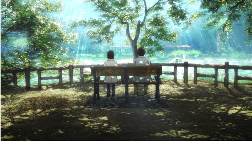 But above all, she’s Haru. I don’t know if the word “haru,” meaning “spring,” has anything to do with her character, but I love the choice of name regardless. She might claim she’s a liar, and at times she definitely will put the happiest face on things, but even there I think she’s lying to herself. It’s really her true nature to shine light onto the lives of those around her. After all, when one explicitly states that one is a liar, you have to be telling the truth for that to have any meaning, which means you’re not a liar. This was a clever moment during one of Haru and Rikuo’s multiple conversations on the park bench. It speaks to the depth of the dialogue these characters engage in.
