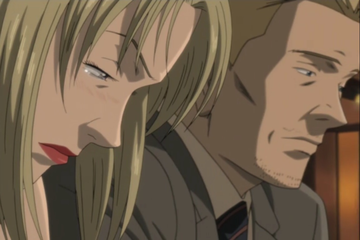 Once Johan murdered Richard Brown, the former detective who had killed the young man some time back in a drunken rage (supposedly), that’s when I lost it. I would’ve been out to kill Johan after that. Poor Mr. Brown was getting his life back on track. His wife and daughter left him after the shooting, fed up with his alcohol addiction and the aftermath of the incident. He was just getting to a point where his wife would meet with him to talk, and his daughter was ready to meet him that day. Then Johan led him around and seduced him into drinking again, whereupon Mr. Brown fell from the rooftop of a building to his death. I’d had enough at that point. There was no denying the incomprehensible monstrosity of this character after that. This empty human shell wreaking havoc on people’s lives is maddening to the viewer’s soul.