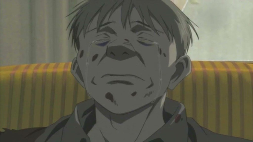 Dr. Tenma is a good man. It’s pointed out many times that he can only save lives. He cannot take them. To the very end he upholds this part of his character. This is what separates him from the world. Throughout this story, we see multiple types of reactions by many different characters to the injustices and the horrors committed against them or their loved ones. Who doesn’t sympathize with Nina’s resolute decision to kill her own brother? Or with any random character’s desire for revenge seen at times throughout the show? This is the typical reaction, and we see lots of different versions of it. Whether it’s Nina’s simple calculation or a passing character’s instant desire for revenge, that’s the reaction we understand. That’s the “normal” human reaction for us.