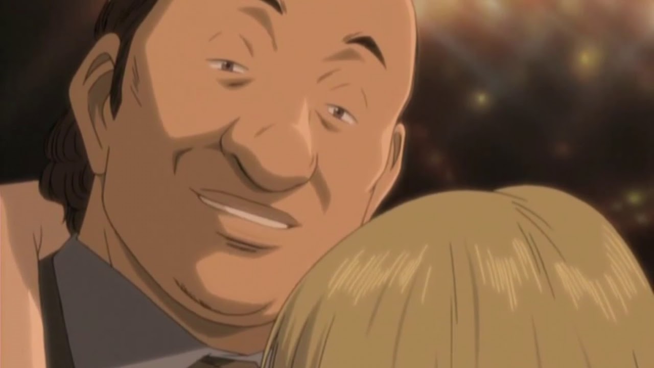 My favorite supporting character is probably Mr. Grimmer, another of the Kinderheim 511 cases. He’s found a way to live, and does so with a big smile on his face. He doesn’t properly perceive his emotions until the very end however. The poor man doesn’t cry because he’s dying, he says at the end, but because his son died. He finally felt sadness at that unhappy event in his life. But beyond his heartfelt side, I love the Incredible Hulk thing we get from him! This is another monster type thing that this series overuses a little, the alter ego, but this is the best example of it in the show. We never get to see this thing in action! Yet after the second appearance it makes, we know it’s truly there. Grimmer goes from this mild-mannered, tender-hearted, big lanky guy into the raging beast that beats his enemies to death. The gentle giant character transforms into the Hulk. Or, as he calls it, the Magnificent Steiner, a fictional German copycat show of the Incredible Hulk. It’s totally unexpected, and it brings the beastly monster into our view.