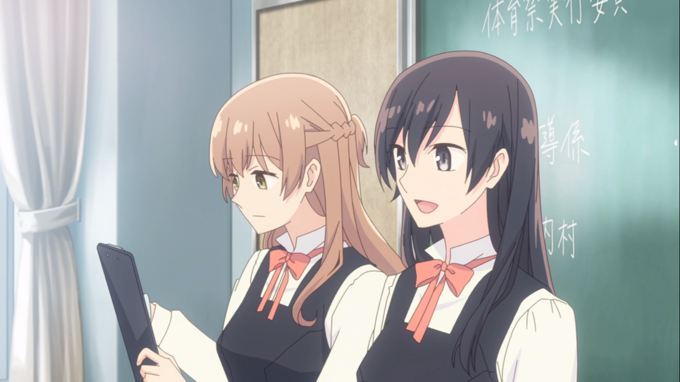 Touko and Yuu are the two lovers in this series. Right away, here comes the first Citrus comparison. Touko is tall, dominating, raven-haired, and extremely mentally fragile. Yuu is light-haired, indecisive, confident, and surprisingly receptive. I tell you, following Citrus in 2018, the timing for this anime couldn’t have been any worse in regard to these two character designs. The comparisons to the Citrus lovers were inevitable, and served to draw even more attention to further comparisons.