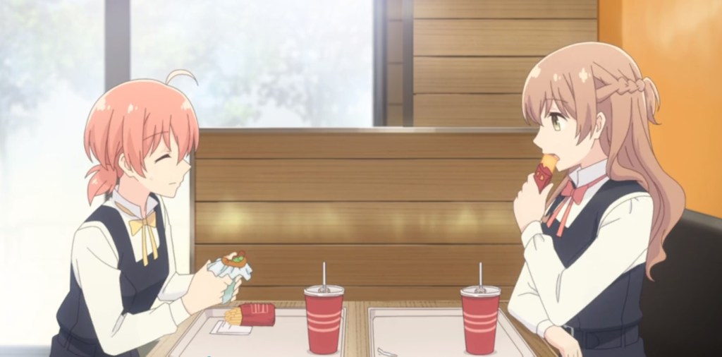 Number one, this is unusual. It’s not a new character trait in anime, but it’s rarer. Second, it doesn’t particularly ever play out. What I mean by that is she never gets over it. She believes that she doesn’t have any romantic feelings for Touko all the way up to the end of S1. While I would argue she is experiencing love by the end of that season, she hasn’t changed her view on the matter, and certainly isn’t about to stuff her tongue down Touko’s throat anytime soon.