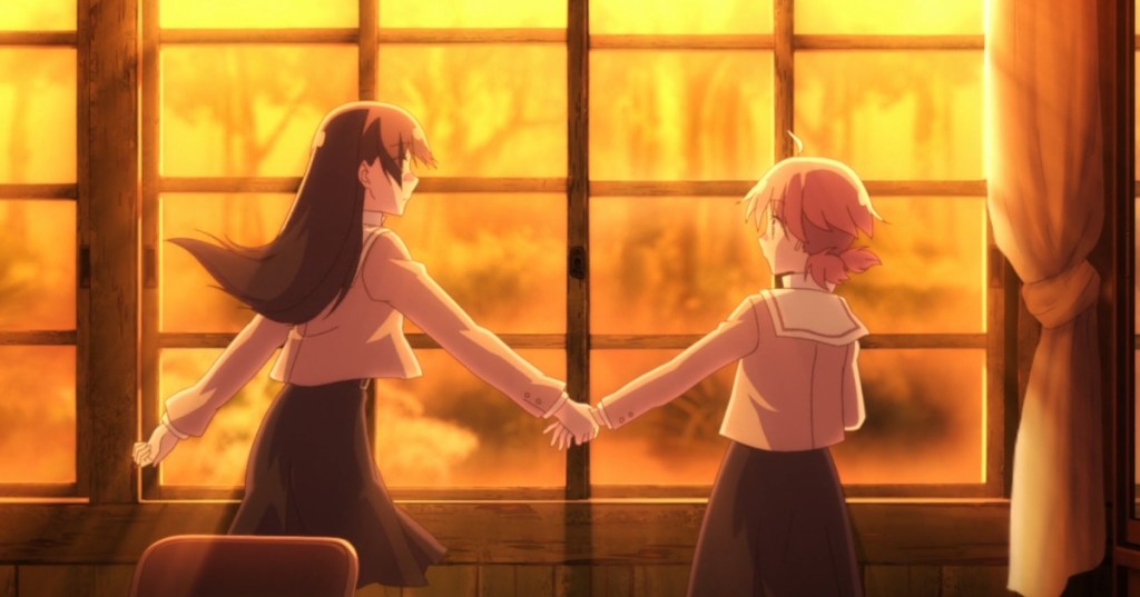 I have it on good authority that these girls’ relationship does escalate in the manga. S1 of the anime has not covered all the material from the manga, so we have an interesting resolution to some of the curiosities of Yuu and Touko’s relationship to look forward to in S2. We had a few passionless kisses in this show, but I look forward to that escalation in the next season!