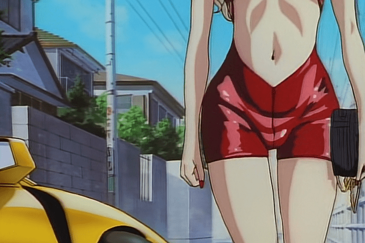 It’s very ecchi. Legs, arms, shoulders, breasts, thighs, it’s all on display. Anime tradition only draws the H-line between bare genitals and no bare genitals, and predictably we see no unclothed muffs here, censored or otherwise. But it gets as close as anything without crossing that line! Ayuko adjusts her swimsuit in that area several times. Reiko sits astride her powerful motorcycle clad in g-string only. The president crosses her legs in provocative ways a few times, not to mention her outfit again and its lines and curves. Of course there’s the boob show as well! Nipples covered and uncovered pop out clearly throughout this show. And anytime that’s not the case, the breasts are well defined and usually centrally placed in the frames. It’s about as R-rated as it can get in this regard without crossing the proverbial line.