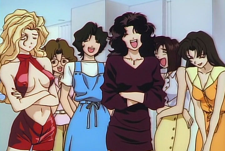 All the girls are drop-dead gorgeous. The ultra-ecchi clothing is toned down a little when the girls are high school age thankfully, but we get lots of ecchi scenes with all the girls. The most extreme characters, in this regard, are in their twenties at least. Obviously the president is the most extreme in her outfit. But Reiko Terayama, the biker girl, is the most extreme in her scenes.