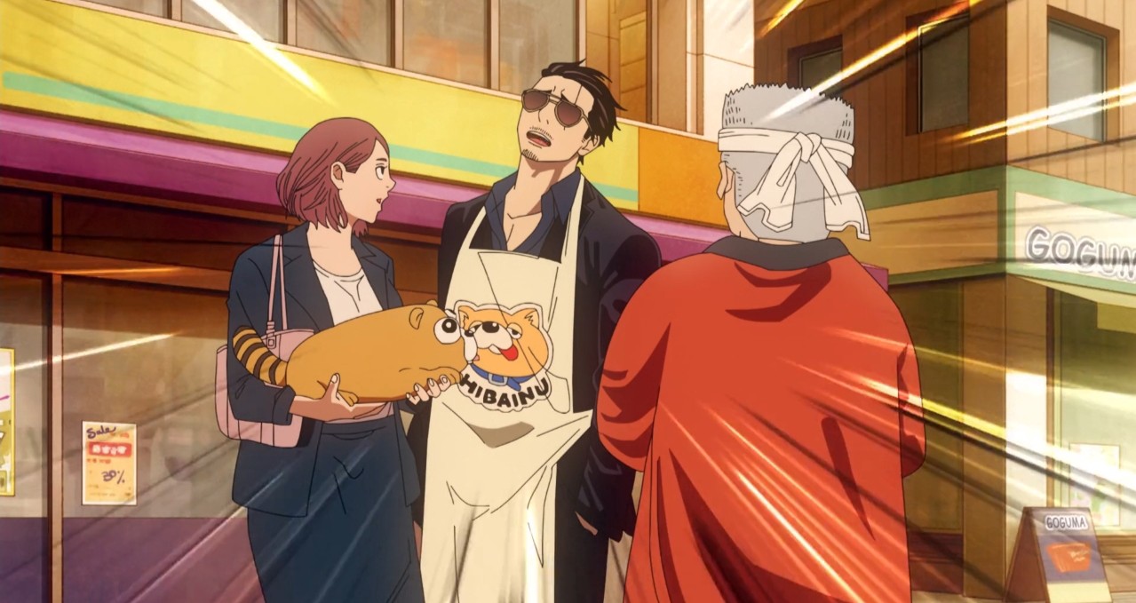 So this story begins and ends with its premise, and nothing much comes of it. It’s presented in short vignettes within each episode, just trying to show how Tatsu deals with all these various encounters with normal people and yakuza in his new role in life. That’s really the only way you could do this, but even here, the vignettes are almost too short. There’s five or six of these in each episode, and each episode is only 15 minutes. You do the math: 2-3 minutes per scene. Nothing much happens, then we move on. The scenes are meant to emphasize the irony, but they, like everything else in this brief series, feel too contrived, too short, and not very interesting.