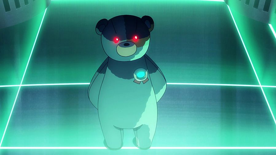 I wondered why Matsumoto, the AI, was a cube. When my curiosity finally moved me to look up what “fluorite” was, I unexpectedly found my answer. The substance “fluorite” crystalizes into cube-shaped masses, often irregular overall, but with nearly perfect cubic structures on the outermost portions. Look it up, the images are fascinating. I know little about the natural sciences behind all this, so I can’t say whether there’s anything more to the choice of “fluorite” in this show’s title than this in a scientific sense, but at least I had my answer about Matsumoto’s shape. Then we had the Danganronpa thing with the bear, which was kind of weird. There might’ve been a reason behind him taking over the stuffed animal, but I’m not certain about this so I’ll hold my silence on that.