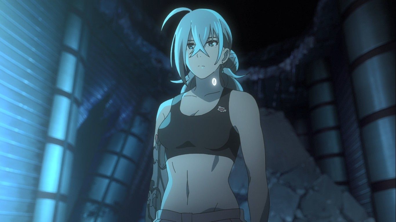 The lighting is worth noting too. Scenes take place in a very wide range of lighting levels, but it’s all handled extremely well. Lighting angles on Vivy set her off very well in all of her scenes, whether that’s moonlight at the beginning, sunlight just outside the Earth, or artificial light on stage or in some hostile hallway. Yellow light, white light, blue light, fluorite light, there’s a ton of attention to detail in all of it.