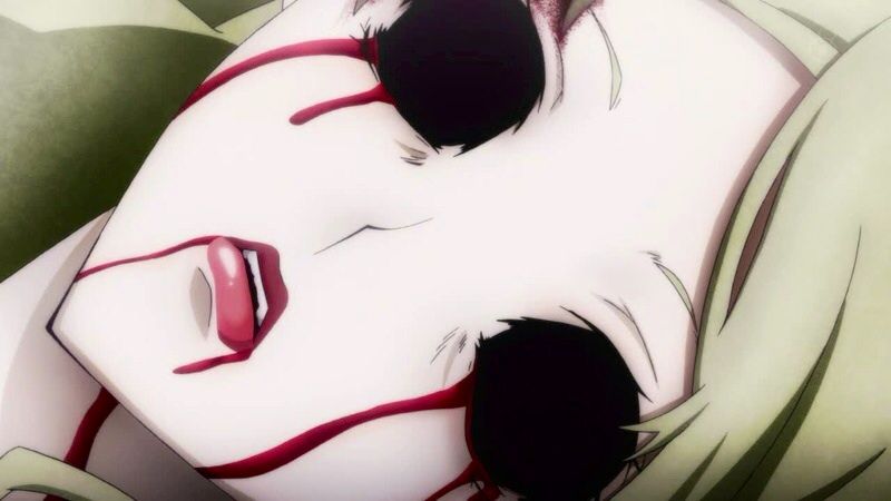 Like lots of horror anime, the artwork has a certain unmistakable “horror” appearance about it. If you recall Parasyte or Mirai Nikki, that’s exactly what I’m talking about. Edges are well defined, colors are very stark, hair is very pointed, and shadowing is painstakingly managed. I love how shadows are almost nonexistent in “normal” sunlit scenes, but are of immense importance in any other kind of scene.