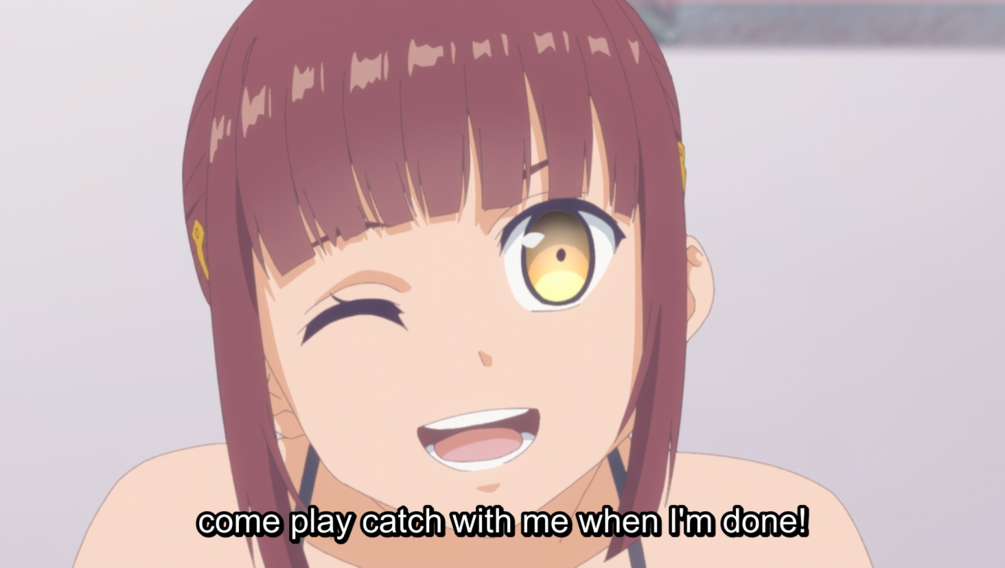 So that’s kind of the theme here. An interesting set of pretty characters that sometimes are difficult to tell apart unless they have a really prominent defining feature. Or, a unique prominent defining feature—the girls all have a common prominent feature. So should I really try to make a big deal about the quality of these characters? After all, this is pretty much a boob show sans the nudity. The reason there’s no guys’ faces is because we’re supposed to be looking at the girls, emphasis on “looking.” Any way you look at it, this is a visual show. How important can the individual characters be at that rate?