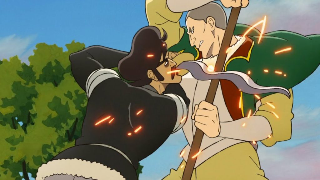 The animation was okay. I generally don’t like when the drawings themselves are sacrificed to animation, but I get it here and there. Here the animation was okay, but again it was so overshadowed by the ugliness of the drawings that I could hardly give it much credit. Watching Bojji jump around in his diaper jumpsuit, waving his toothpick, face set in idiotic determination, felling opponents who are meant to defend even Bosse…I couldn’t make this work in my head. There was so much dissonance over what I was seeing compared to what I knew was happening that it all just seemed ridiculous once again. It wasn’t inspiring, awesome, or breathtaking: it was nauseating.