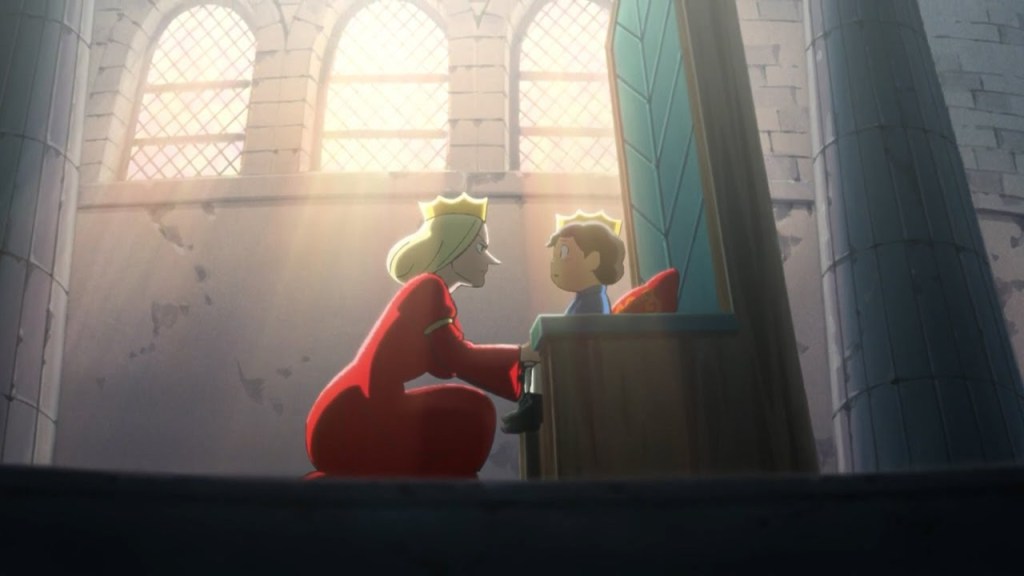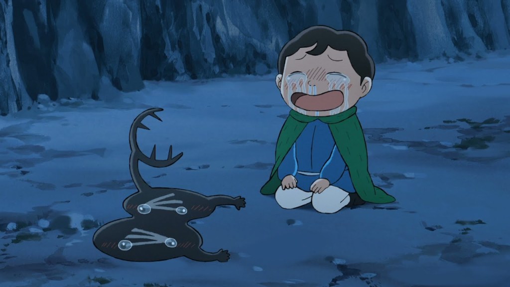 Kage is a wasted character. He’s a—shadow? He looks like a puddle of motor oil shaped like an 8 with two eyes, with a hand that appears here and again, and a mouth on the end of a stick that looks like the jaws of one those giant beetles we all hope we never meet. Oh, Bojji can “lip read” that too, by the way. You want to know how I’ll remember Kage? “Bojji!” “Bojji…” “Bojji!!!” “Bojji, Bojji, Bojji, Bojji, Bojji, Bojji…” One of those last episodes that literally happened, Kage repeating “Bojji” over and over like that. I prefer to stay out of the realm of vulgarity, but I really wanted to describe this in the most vile terms. I will restrain myself and not do so. I’ll put it this way: I thought Raphtalia, from Rising of the Shield Hero, and her legendary incessant “Naofumi-sama!”, was bad. This was at least that bad. It was a freaking waste of Murase-san’s, the VA’s, time and ability. I won’t spend any more thought or space on this waste of a character than to say that such a creature seemed fairly unique as a character type, but nothing whatsoever was done with his physical appearance, abilities, etc. He’s just Bojji’s friend, and Bojji his, when neither of them had friends, and both were misunderstood, and both were…oh boo hoo, whiny trite bullsh….