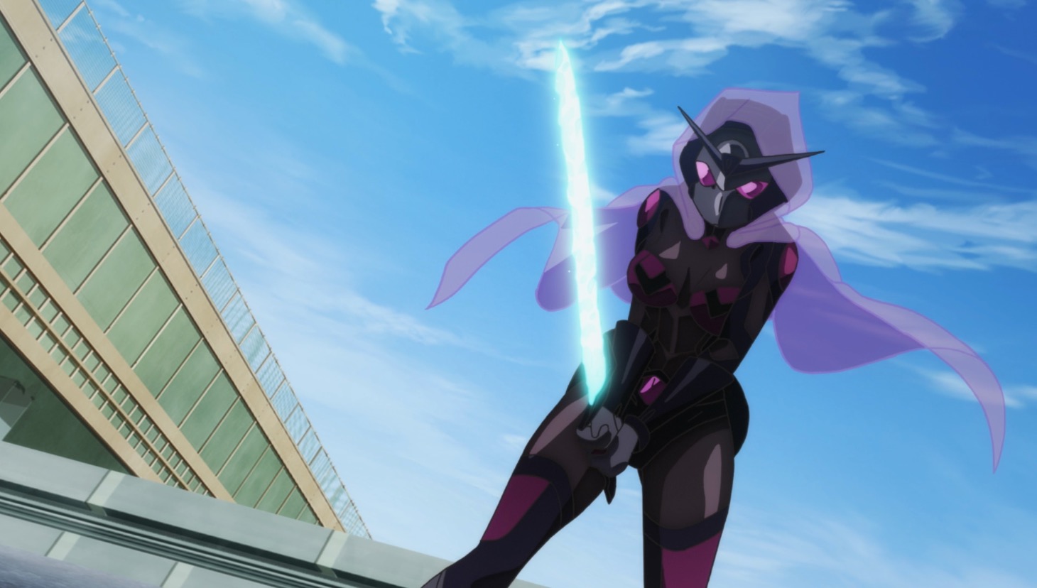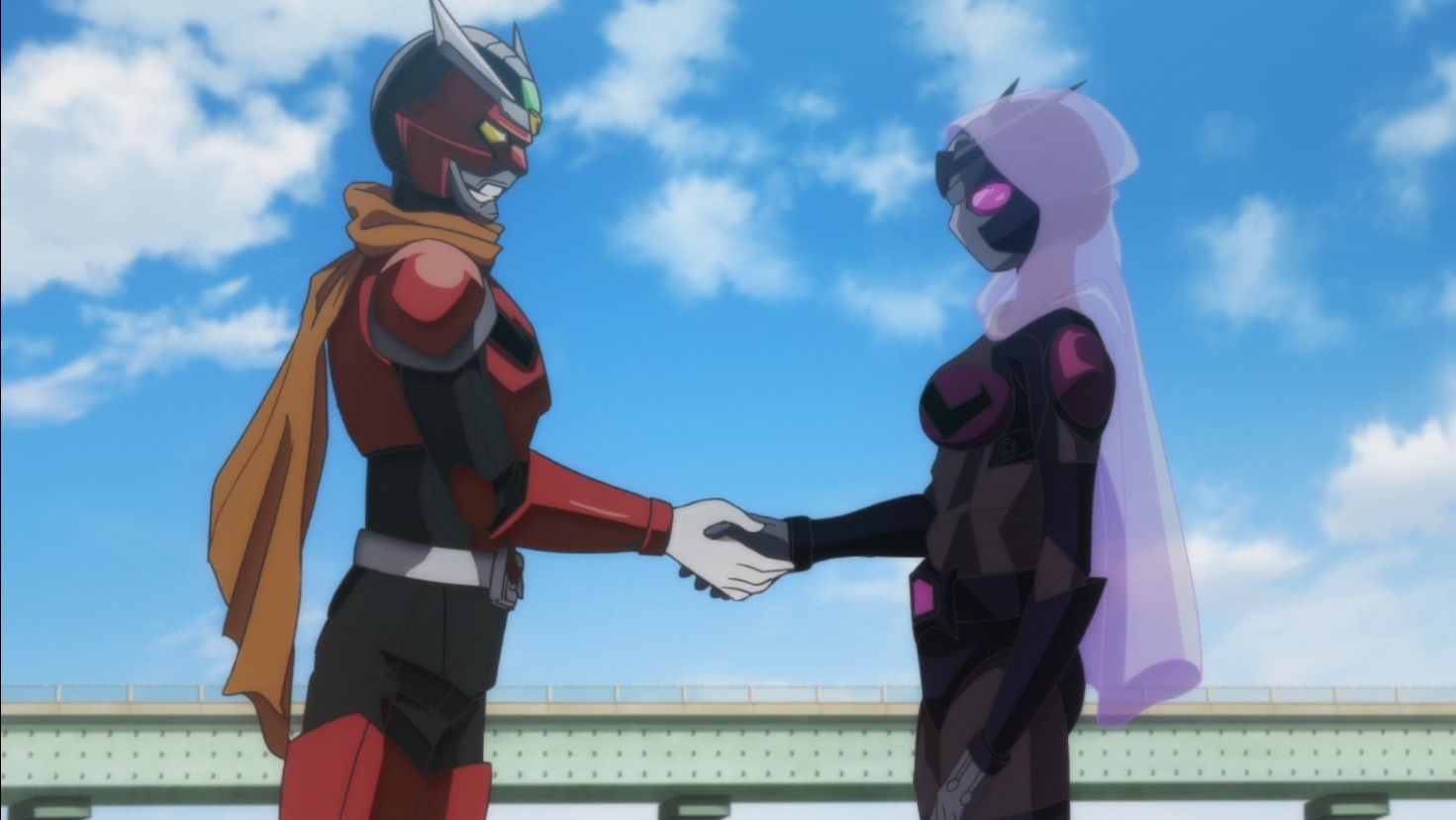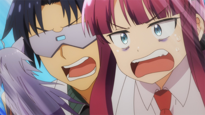 The people in her department? Let’s not get too carried away and say “people.” She works with her boss, Sadamaki, a man who wears a visor over his eyes for half the show until suddenly he we see him without it outside work, kind of a funny moment. But that’s the only human in her department. As far as I can tell, that’s the only other person in her department until they create monsters that work alongside them.