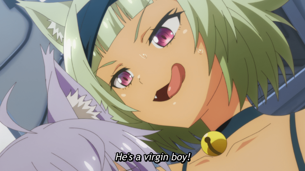 Wolf boy, cat girl, alligator man, pretty woman…sounds like the lyrics to a song right? That’s basically the character design for this show. Girls with pretty eyes and lots of different hair colors and mildly but obviously sensual forms (and outfits) and lots of very non-threatening monsters. And the animal-eared girls. I know some people love that kind of thing. It doesn’t really get me going one way or the other, but if you like your animal-eared girls, you get several of them here. And one hydra girl.