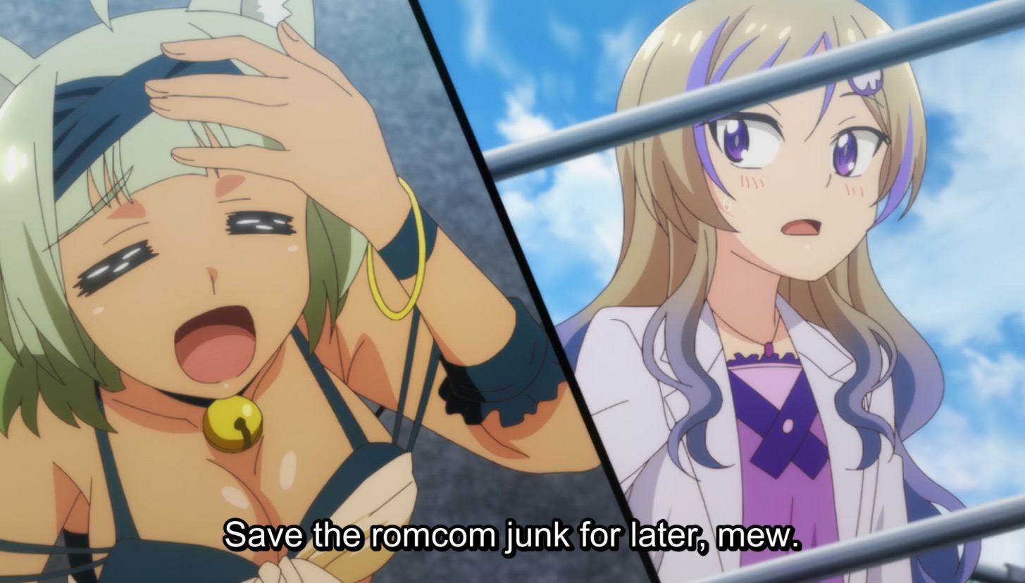 I mentioned about Wolf-kun turning out as a female werewolf type creature instead of a male, but then we have things like the chocolate monster who is ill-conceived and rushed out due to deadlines, the hydra girl whose hydra heads all have different personalities, the mummy girl who can’t speak but decides she wants to become an idol—I didn’t get it, but I felt like this might’ve been a nod to Zombie Land Saga—and of course the chicken who…never mind, I’m not talking about the chicken. So things don’t go as planned usually, and it makes for funny situations.