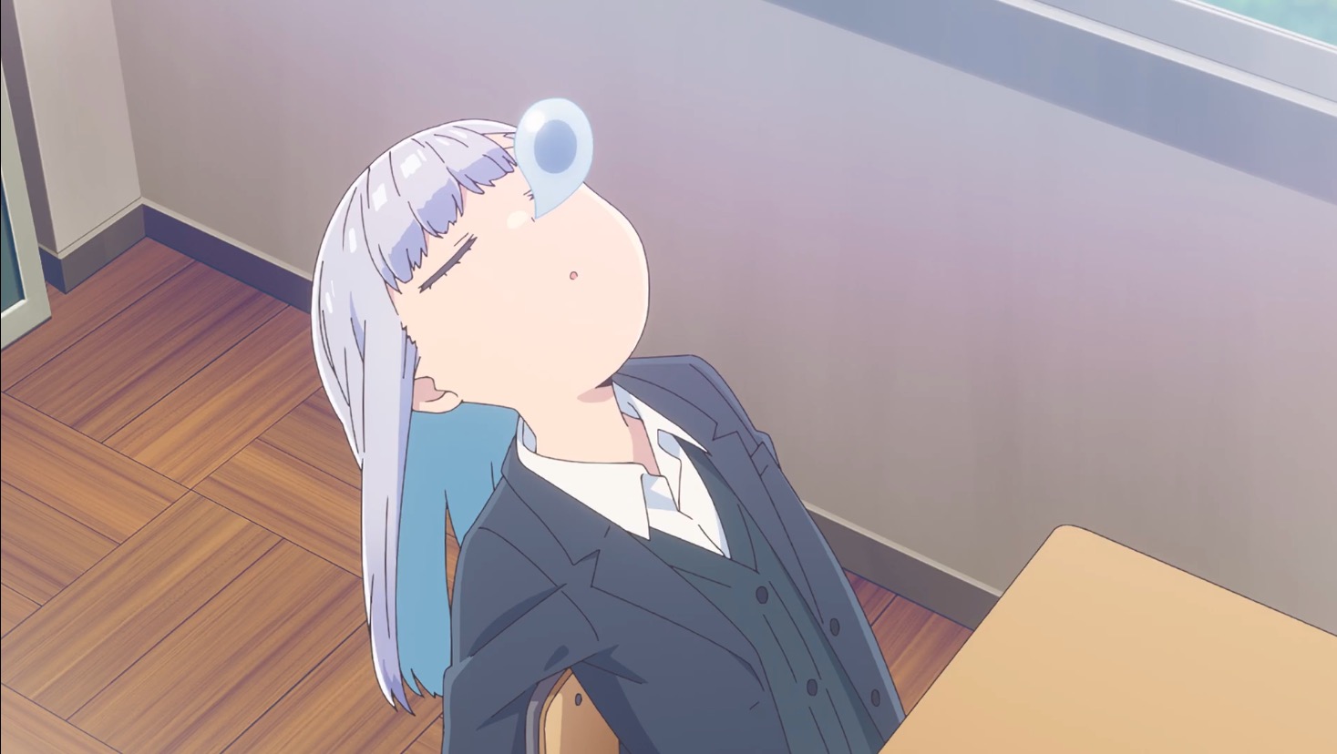 Aharen-san, when audible, is voiced by the prolific Inori Minase (Rem, Re:Zero; Itsuki Nakano, The Quintessential Quintuplets; Jeanne, The Case Study of Vanitas; Hestia, DanMachi). Aharen-san was a very popular manga before it became anime, so it’s not surprising the producers would go for a big name for Aharen-san’s VA. But this is yet another instance of a major VA playing a nearly silent character, something we’ve seen a lot of in recent years; a notable example is Aoi Koga as Komi in Komi Can’t Communicate. But what I love about this is, interestingly but sort of unsurprisingly, the voices for these very quiet characters are actually hugely important. Komi in her series and Aharen in this one don’t speak much at all, but when they do, everybody tunes in and listens hard. The voice that speaks at that moment better do that moment justice. And let’s not forget all those little sounds that quiet characters make in place of words that are so full of expression yet so fleetingly quiet. So it’s great that the best VAs out there take on these roles. Gotta be easy work for them too, right?