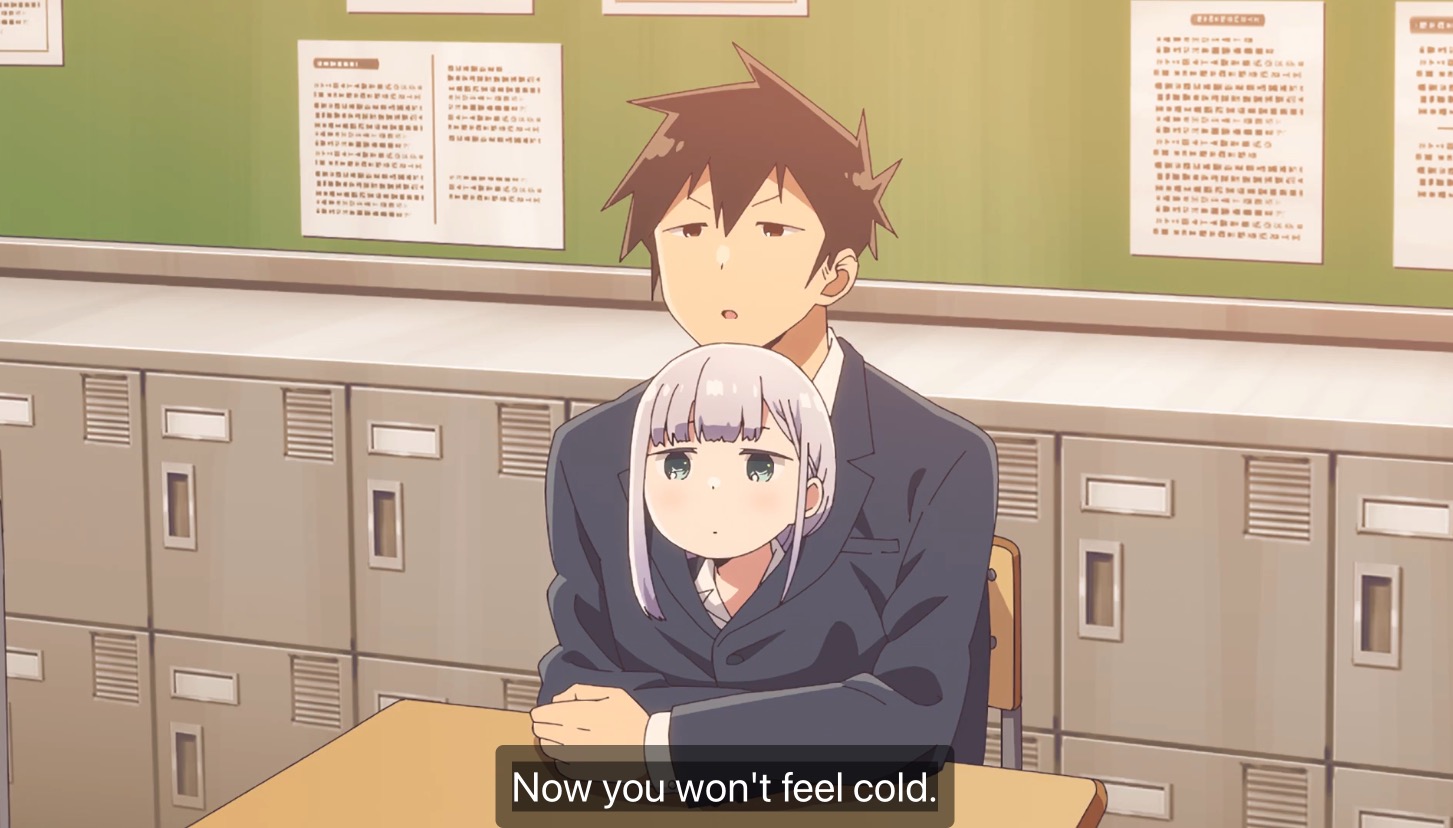 Most of Aharen’s vocal and distance gauging difficulties are focused on Raidou-kun. Raidou Matsuboshi is also not very communicative and is very low-key. He finds himself seated next to the tiny Aharen-san in their class, and the two’s curious personalities and height differences naturally push them together. Naturally? Well, naturally in the anime-author-wants-it-that-way sense. A lot of things in this show are extremely contrived, but I actually kind of like that here (more on that later). Raidou and Aharen falling into friendship (and more!) is definitely one of these contrived story elements, but also the most understandable, given we don’t have a tale for these two at all if this doesn’t happen. Rom-coms and how the characters meet and all that. Blah blah blah…anyway.