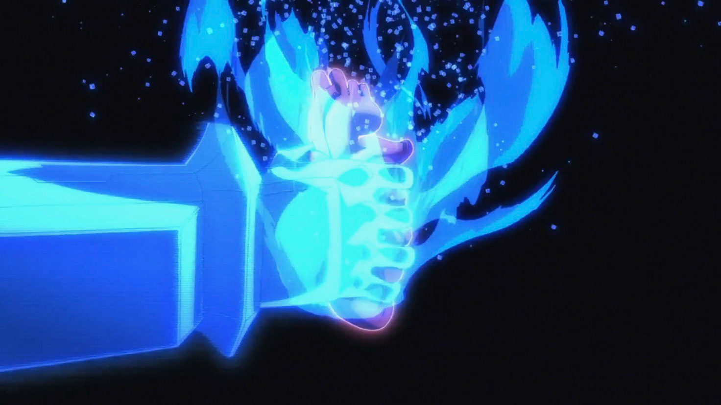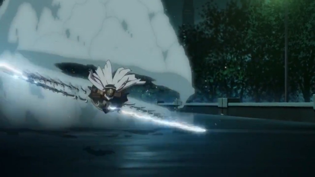 Shunma Suruga, Blitz’s creator. I like her. First, she shares a name with Kanbaru Suruga, bringing that connotation to mind, which is interesting considering her character design. Second, I loved this scene with Blitz where she knew exactly what he was going to say the moment he said it, saying it along with him as he spoke. This was the kind of interaction I loved seeing between the created and their creators.