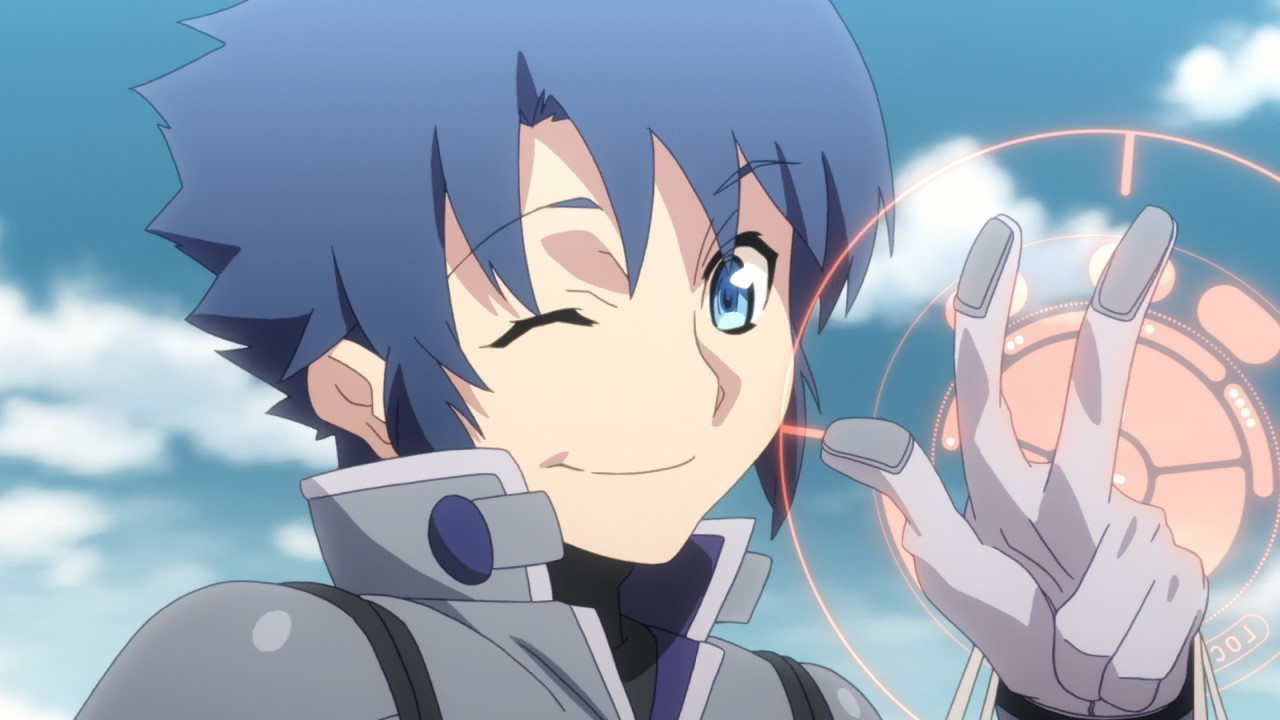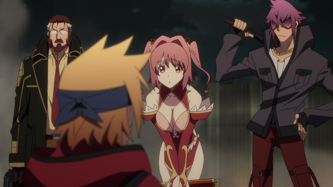 But I also think there’s just enough of those individual, genre-based characteristics in each character to make it satisfactory without going overboard. Kanoya clearly looks like a mecha character. Blitz really looks like a brooding and powerful gunman. Meteora really looks like she’d be more comfortable casting spells to support a team of arrow shooting, sword wielding guildmates. Selesia looks like she was just snapped into another reality fresh from a sword fight. Chikujouin really looks like a rebellious, delinquent student with murder on her mind. You really can tell visually that all these people are from different genres, yet they all look similar enough for it to not be a distraction. I think it’s well done.