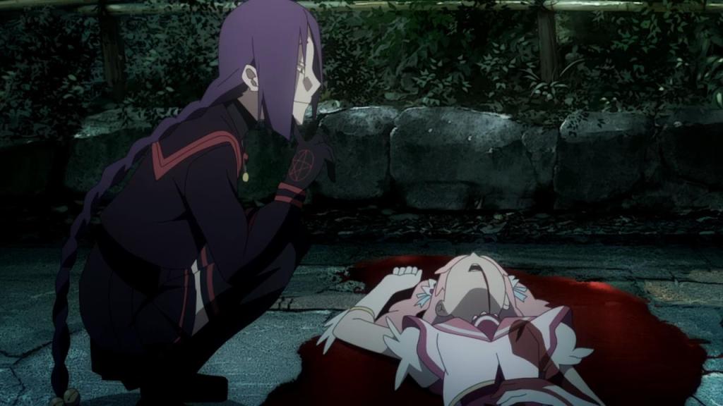 And then—spoiler—she was killed. Talk about unexpected. Not only was the magical girl character arguably the strongest of the creations, she was tragically killed. I was shocked. Tragic deaths like this don’t by themselves simply make a character greater, as I regularly say, but for this to happen to the magical girl character was an interesting character touch. She’s the most unsuspecting, the most naive, so it might make sense that she might more easily be killed than the others, but it was still unexpected and nicely done by the writers. On the story side of things, I thought it was very interesting that it was Altair who killed her; Altair, the darkest of the characters in the series, nearly the complete opposite of Mamika.