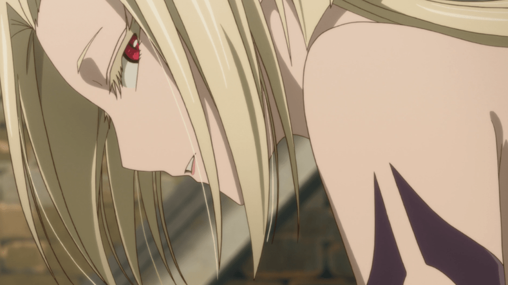 Actually I think she’s one of the most sympathetic characters I’ve ever seen in anime. I’m not sure exactly why I think this, but my level of sympathy with her was extremely high from the outset. Possibly because that outset was seeing her contract herself into slavery, a twist on the usual suicidal character type we often see in broken characters. But it was effective either way, and my sympathy for her never waned. I felt bad for her when things were bad, I felt elated when things improved, I felt excited when her emotions would bubble to the surface, and I felt peacefully content when I saw her look with beautiful adoration into Elias’s eyes.