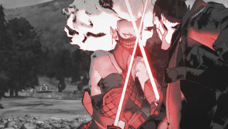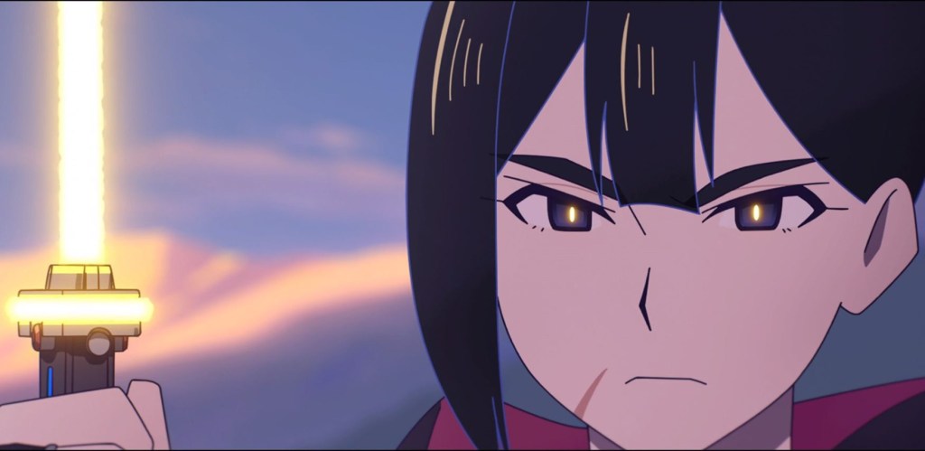 StudioTrigger used the contrast of the lightsabers’ mighty light with a dark environment in The Elder, something that’s very familiar from impactful lightsaber duels in Star Wars.