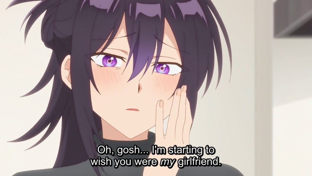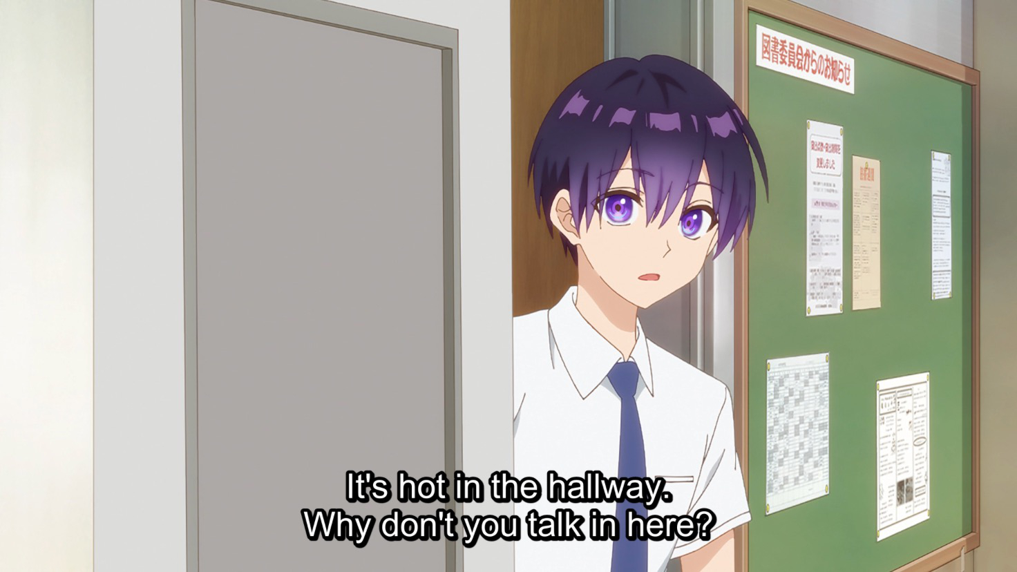 Oddly enough, even the guys have pretty eyes in this show. This is becoming a thing more and more in rom-com these days (January 2023). Yuu Izumi is particularly infected with it. How many guys in anime have the coveted purple eyes usually reserved for top-tier female characters? If I’m noticing male character eyes as “pretty,” that obviously is intentional by the artists. I’m not sure how I feel about his eyes in this show, or others like him in other shows with such eyes. How do all of you feel about this?
